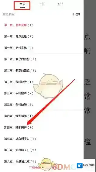 5、这时候我们在这里就能够看见小说的“目录”,用户可以找到你需要阅读的章节并点击,这样小说的阅读界面就会快速的进入到该章节内容。