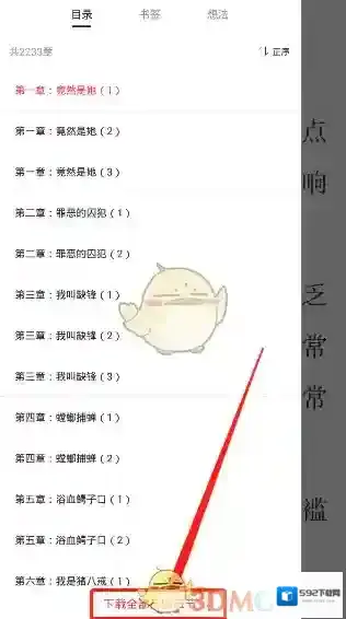 6、在下方我们还能看见“下载全部已购章节”并点击,这样系统就会快速的缓存该篇小说,(付费章节是需要用户购买后才能够缓存)。