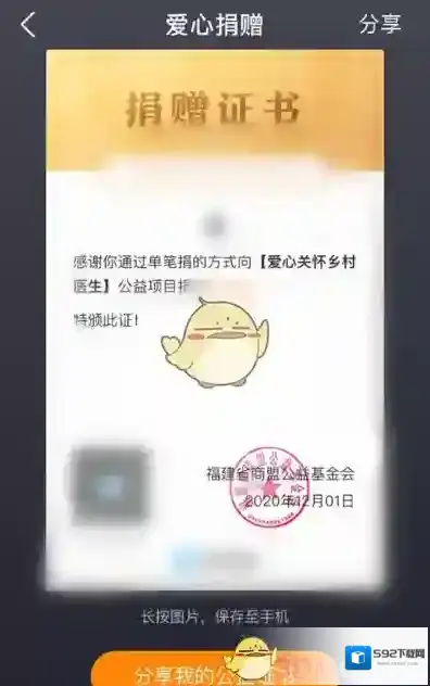 5、打开后就能看到证书详情,还能保存或分享证书图片。