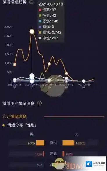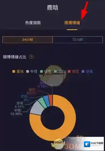 1、微博情绪占比是指在指定时间范围内,该关键词的各类情绪声量的对比呈现和成分占比。