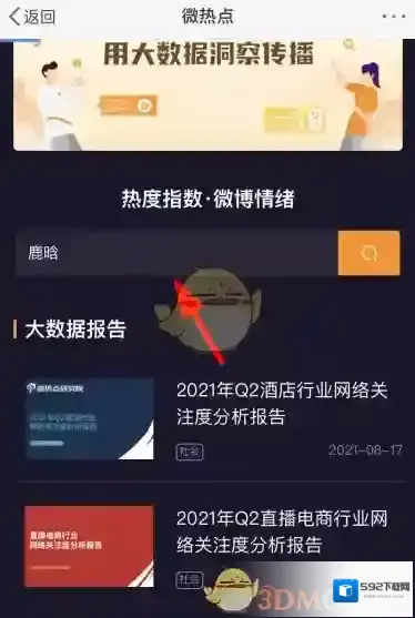 4、进入之后,微热点可以搜索“人名、企业名、品牌名或时间关键词”。如下图所示:搜索鹿晗。