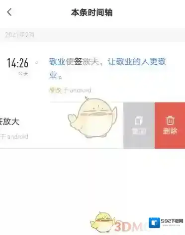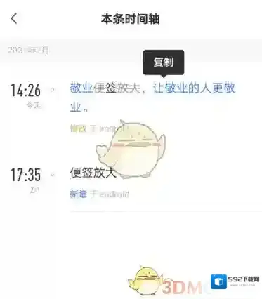 4、选择其中一条日志时间轴内容长按,可选择复制该条时间轴日志记录;也可以按住左滑,对其进行复制或者删除操作。