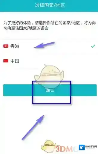 4、将地区选择为香港;
