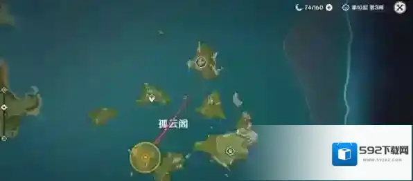 2、打开地图,传送到孤云阁右下角的锚点那。