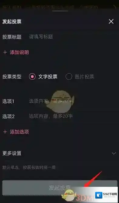 4、填写好投票后,点击发起投票即可。