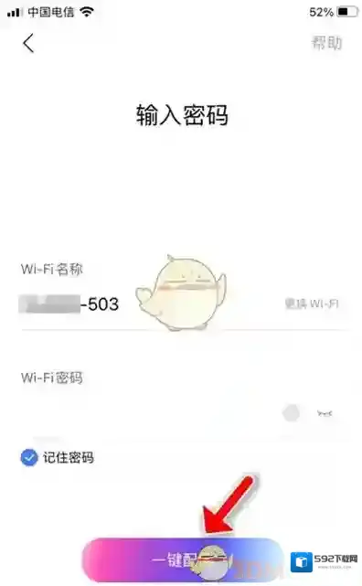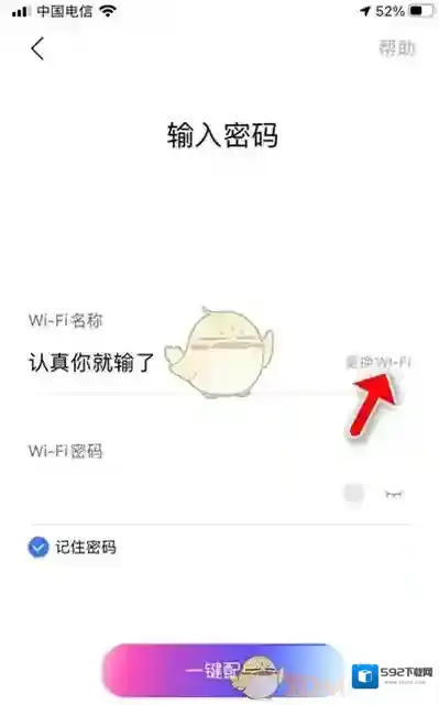 6、选择新的wifi,输入对应密码,点击一键配网即可。