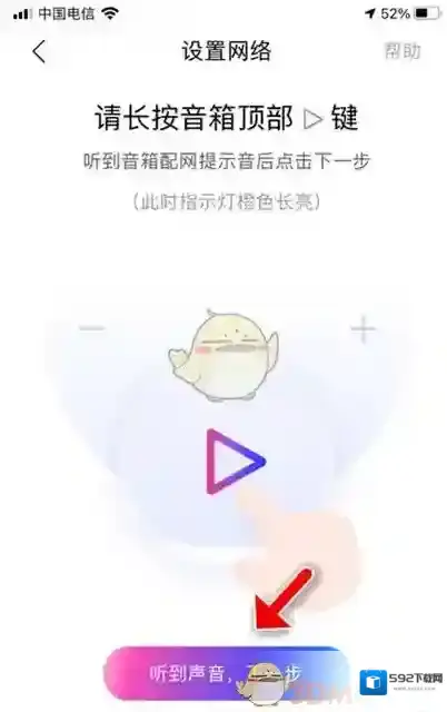 4、长按设备顶部的开始键,点击听到声音,下一步。