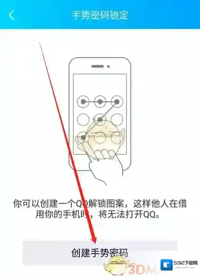 4、进入手机QQ的帐号安全页面后,点击手势密码锁定,进入手机密码锁定页面,点击创建手势密码。