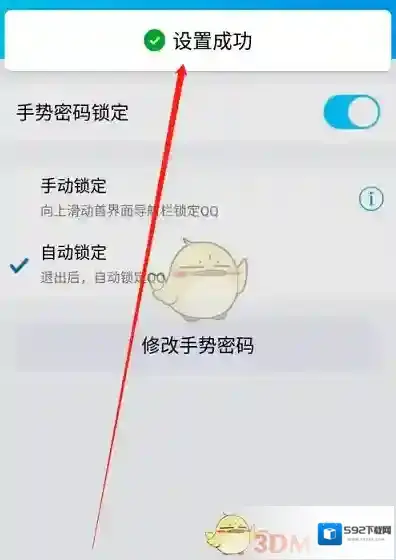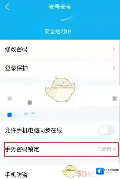 6、待页面上方显示设置成功,返回帐号安全页面,可以看到在手势密码锁定一栏后方显示已启用,这样我们就开启手机QQ的密码锁。