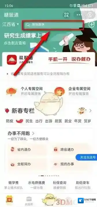 1、通过手机“赣服通”APP或“支付宝”APP的“赣服通”小程序,进入赣服通会自动定位你所在的位置,