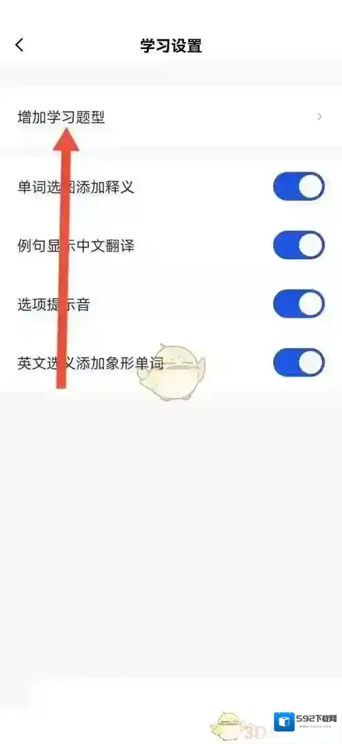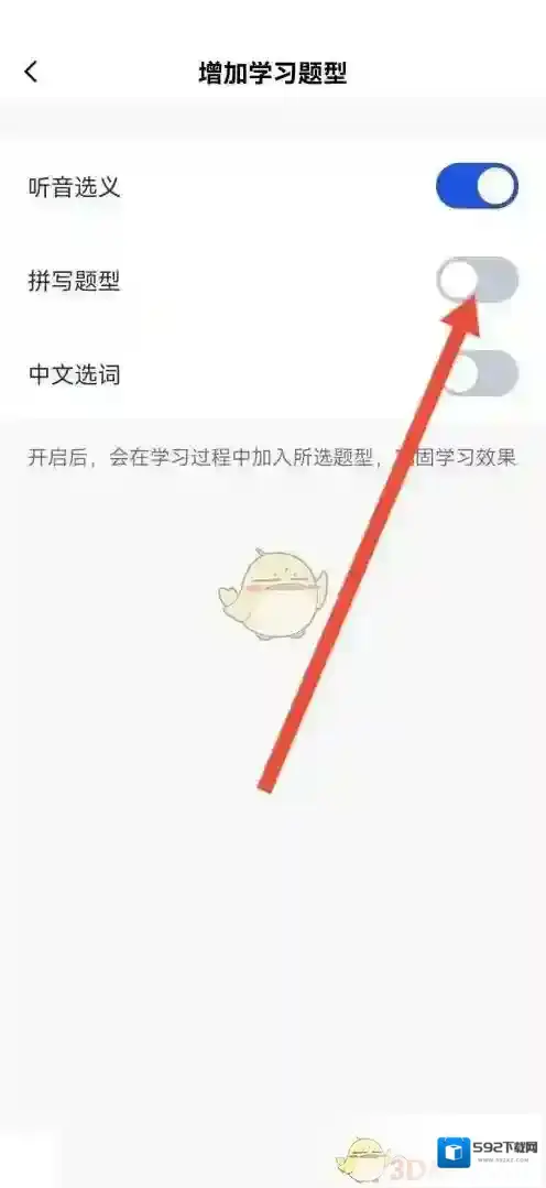 5、最后进入增加学习题型,然后点击拼写题型的按钮开启即可。