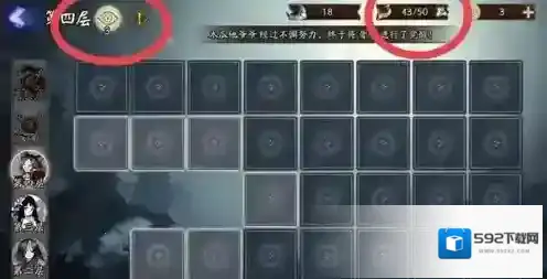 左上红圈叫做轮回之眼,使用之后可以看到每个格子下面藏着什么东西,保证轮回之眼的数量在2-3个就行。我自己开格子的习惯是竖着走两格,然后横着走一排,开轮回之眼,击杀顺序是轮回之眼 宝箱,时曲碎片 普通战斗。这个过程中随时可能出现“下一层”的格子,1-40层一旦出现直接打就行,40层开始清全图格子。除此之外,也有其他爬楼的选择,这里也一并给出参考。虽然左下角有排行,但是排行靠前并不会有额外的奖励,所以只是给肝帝和欧皇们一个上镜的机会。