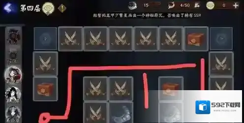 一个走剧情的关卡,跟着剧情走完可以得到丰厚的奖励,可以用来换东西。每日的剧情是一样的,所以从第二次开始可以左下角锁定“简略剧情”来节省时间,过程中的小怪是剧情小怪,随便打没有难度的。每天有两把钥匙(相当于两次机会),可以用勾玉购买一把钥匙(非常划算,推荐每日必买)