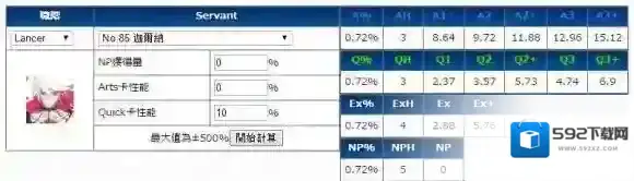 自身的充电chain最高NP效率为AQQEx,不计算暴击、overkill和礼装效果时,打蓝约27%。