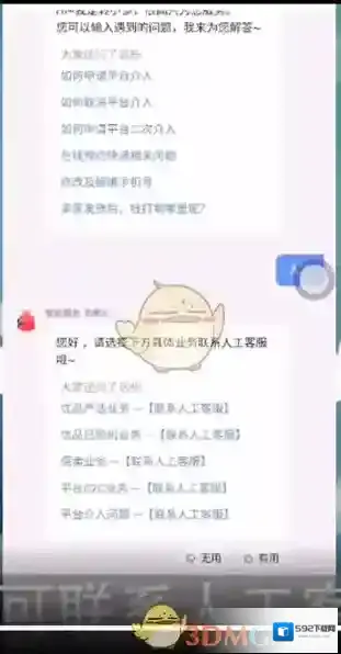 3、上滑客服中心界面,点击界面左下角的平台介入选项,再向智能服务发送人工即可联系人工客服。