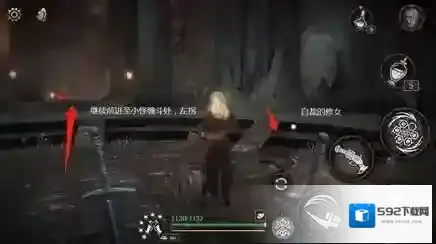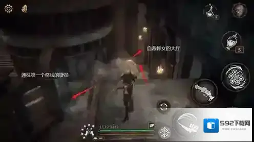 三、继续从神柱门口的方向前进,在图二左侧可开启捷径,直走到底右拐则会碰到想要用圣剑自裁的修女。触发[轶闻]支线任务死亡,或者成为污秽。
