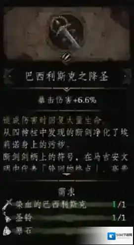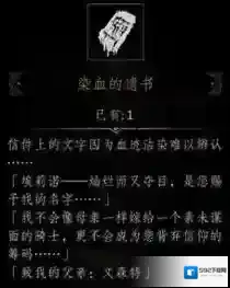 用真圣剑进行修女埃莉诺剧情,获得染血的巴西利斯克和染血的遗书。
