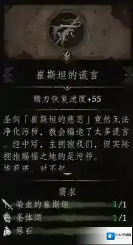 如果选择使用崔斯特的慈悲,会发现感染了污秽的修女并未被杀死,而转化为小怪,击杀后仍会掉落染血的遗书。背包中出现染血的崔斯坦。
