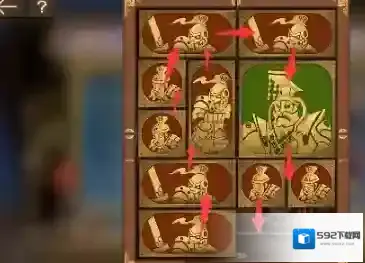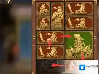 6、之后让将军下方的两个正方形向下移动,其上面的图形全部向下移动,左上角的图形向右移动,左边的所有图形全部向上。
