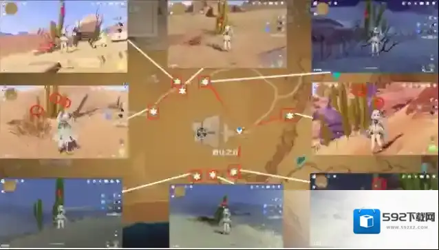 图中最顶上的点位需按图中箭头上山即可采集,其余均分布在山下。