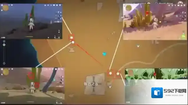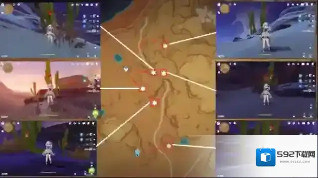 图中下方两处位于山下,从传送点飞下山崖即可,其余均在山上。