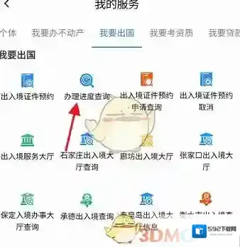 3、进入我的服务,找到我要出国,点击下方的办理进度查询进入