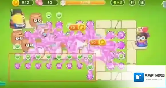 2、接着在第二波上面的出口也会出现敌人,在这里多放置几个满级乒乓球。