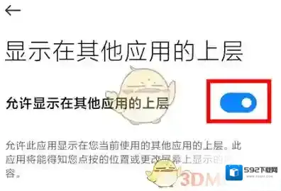 5、将“允许显示在其他应用的上层”后面的开关打开即可。