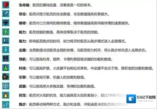 不同的能力可以对房间产生不同的效果,训练哪个属性?指示船员修复还是进攻?设置怎样的AI指令?船员匹配哪个房间更优,是你需要深度研究的问题!
