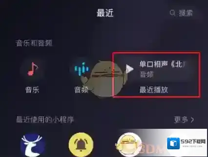 5、最后返回首页向下拉,即可查看最近播放音频。