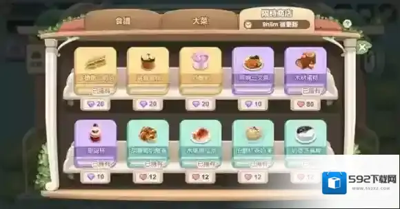 食物制作台:派对上制作食谱是为跑商做准备,也可以直接出售获得高额金币收益。在限时商店或食谱商城购买食谱后,参加派对的玩家可把自己的食谱放到制作台上供大家制作。每个食谱都有制作上限次数,达到上限次数食谱会消失,主动撤下食谱也会消失。