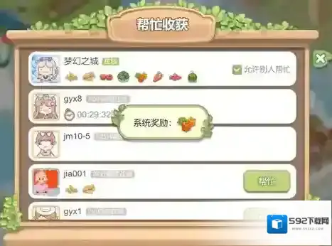家族成员间能互相帮忙收菜,每天帮忙收菜有机会获得随机品种的农作物,多帮忙收菜对于完成家族农作物商船有重要作用。