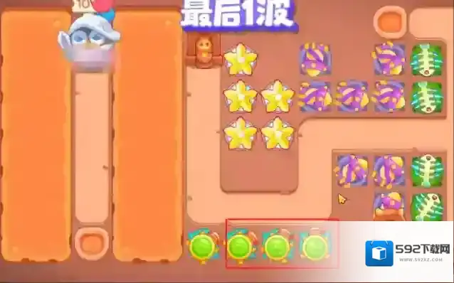 7、下方龟壳补满,这就是最后一波的阵容,省下的钱用来升级或者建造额外炮塔就可以过关。