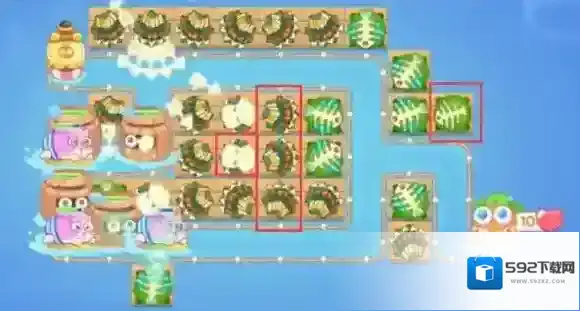 1、这一关会给鱼刺或火瓶,建议玩家刷魔法球、船锚或弓箭。有减速塔的话就更好了。