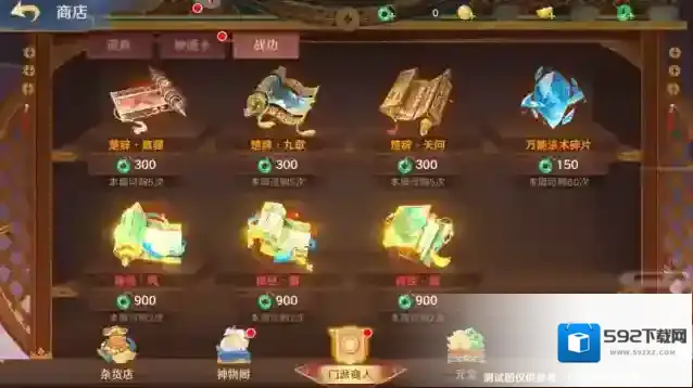 门派战功:对战中获得的门派战功可以用于门派商人-战功商店兑换楚辞、诗经、万能法术碎片等道具。