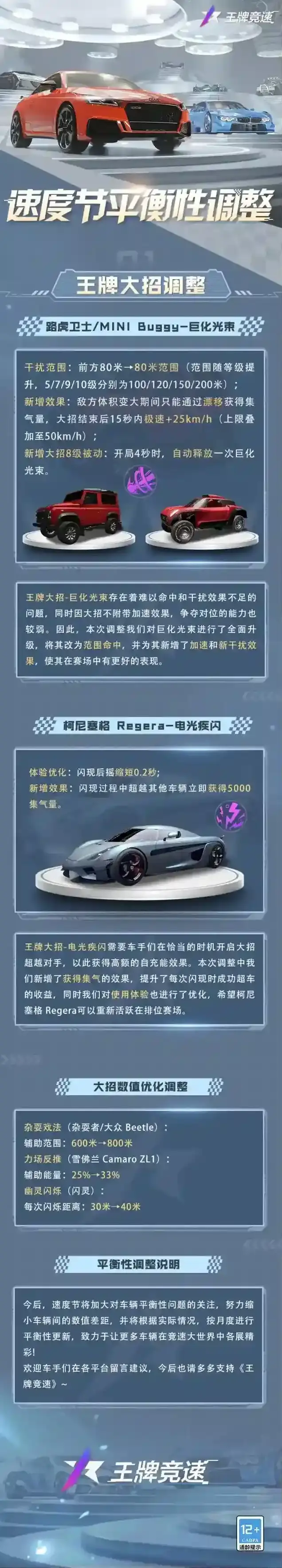 王牌竞速更新公告 没开玩笑,从加入速度节到问鼎车神仅需一周时间! 我们预计于2024年4月11日9:30进行不停服维护更新,预计维护时间2小时。 维护期间您可以正常进行游戏,如遇无响应问题请重新登录。 王牌竞速排位赛 教学指南 操作技巧?赛道跑法?大...2025-10-12 -