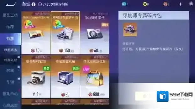 『特惠商店』在特惠商店中,穿梭师专属碎片包也将以超值折扣限时上架,限购3份,穿梭师专属碎片不会过期。