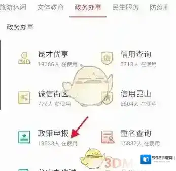 4、点击政务办事专栏,点击下方的政策申报进入