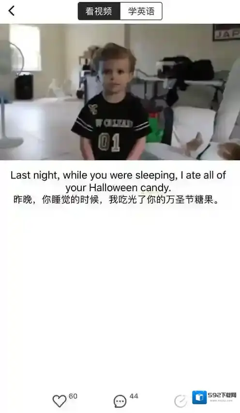 2、点击你选择的学习视频,有三种字幕形式:中英字幕、英文字幕及无字幕,可以点击右上角的图标进行切换。如果你选择是有字幕形式,遇到不懂的单词,直接点击生词即可出现相关解析。如果不想看视频,可以点击视频上方的“学英语”,即可跳转到学习部分。