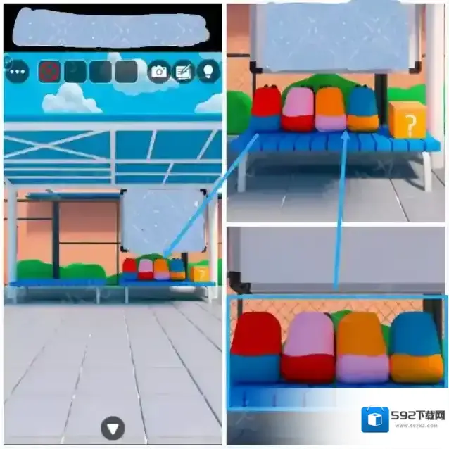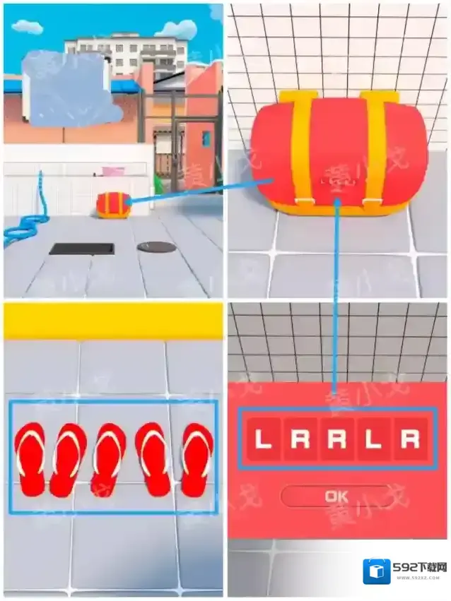 3.点击洗水池前面的书包上的密码锁,根据拖鞋线索,调整密码锁