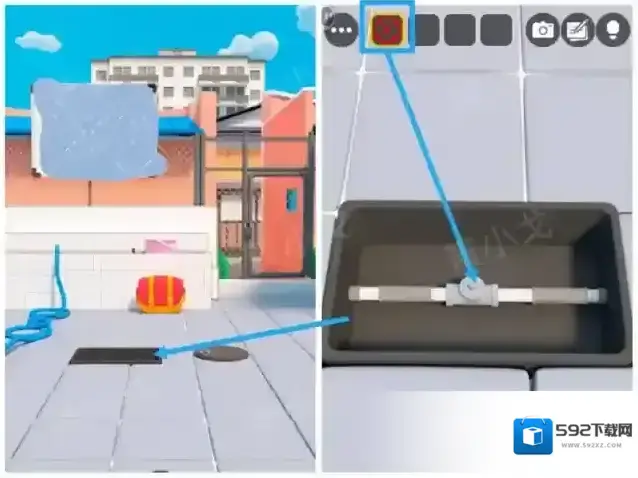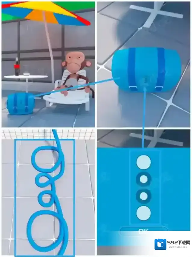 5.点击猴子旁边的书包,根据管子形成的圆圈大小线索,调整密码锁