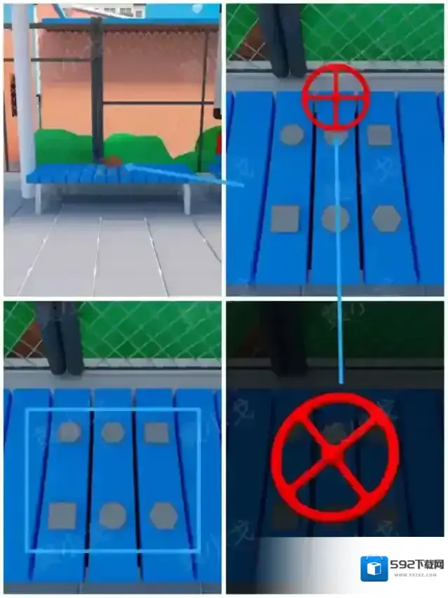 注意椅子上的图形及位置:圆、六边形、正方形 正方形、圆、六边形