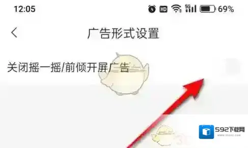 5、将“关闭摇一摇/前倾开屏广告”旁的小滑块点暗即可关闭,关闭后,摇一摇/前倾将不会关闭开屏广告。