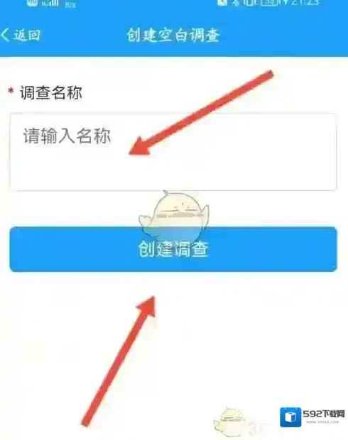 4、输入名称,点击创建调查选项。