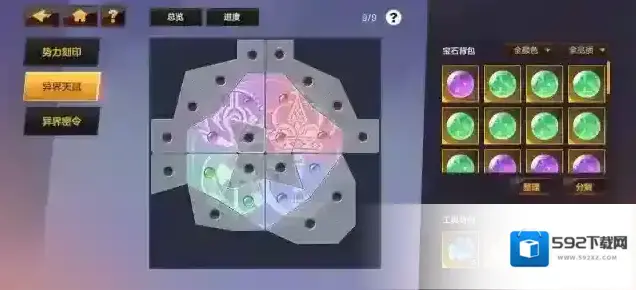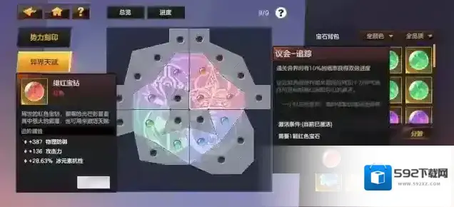 值得注意的是,各势力对于天赋宝石有些小要求,他们只接受与自己势力徽章同色的宝石,激活议会天赋需要红色宝石,占星塔天赋需要蓝色宝石,商会天赋需要绿色宝石,天陨会天赋需要紫色宝石。宝石获取不易,能够寻到合适的镶嵌孔有时也是难事。如果你获得了改色晶片等道具,那就能用来变更镶嵌孔的颜色,激活自己需要的天赋。