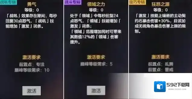 天赋的效果并不是单一的,我们有意将“怒气”增长消耗与额外技能效果融合在了一起,让你在点亮天赋时能同时激活两个效果,使得你有更多点数去选择其他天赋。