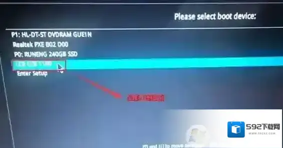 5、插入U盘启动盘,重启按ESC选择识别到U盘启动项,回车;