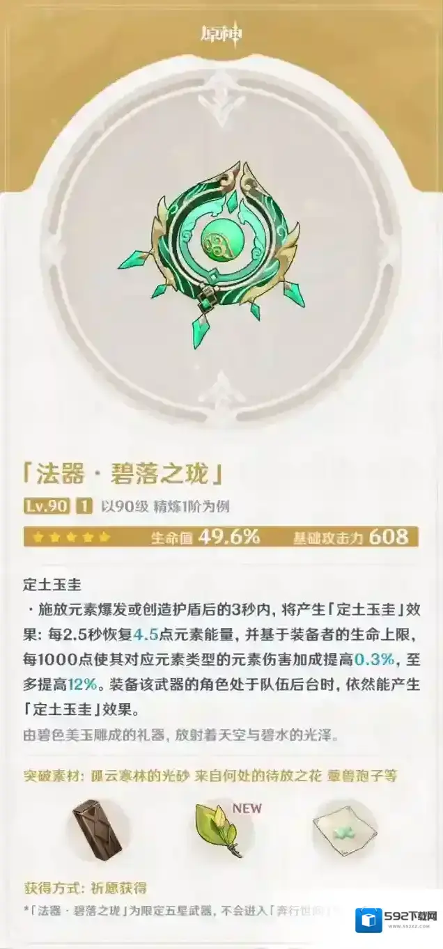 须弥系列四星武器,基于自身元素精通为队伍增加攻击力,辅助能力较强。但是一般法师除了种门和风系很少有堆精通词条的,所以泛用性不算高。