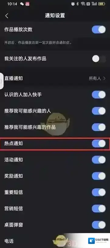 4、然后在通知设置的页面中点击关闭热点通知即可。
