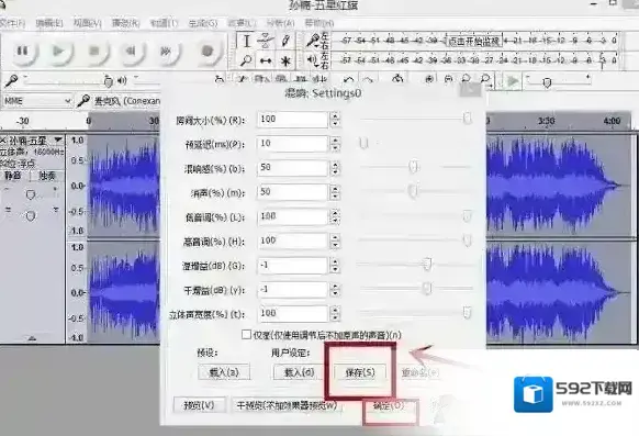 10、在保存了混响设置之后,点击“混响”编辑框下方的“确定”即可完成混响的更改;